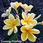 | White and yellow with a salmon or cream-pink hue when young. Petals: broad oval, overlapping, white with yellow at base. Fragrance: sweet, fresh, medium intense. Leaves: dark green, elliptical with pointed tip. Note: produces large flower-heads with multiple flowers. Good keeping quality. | |